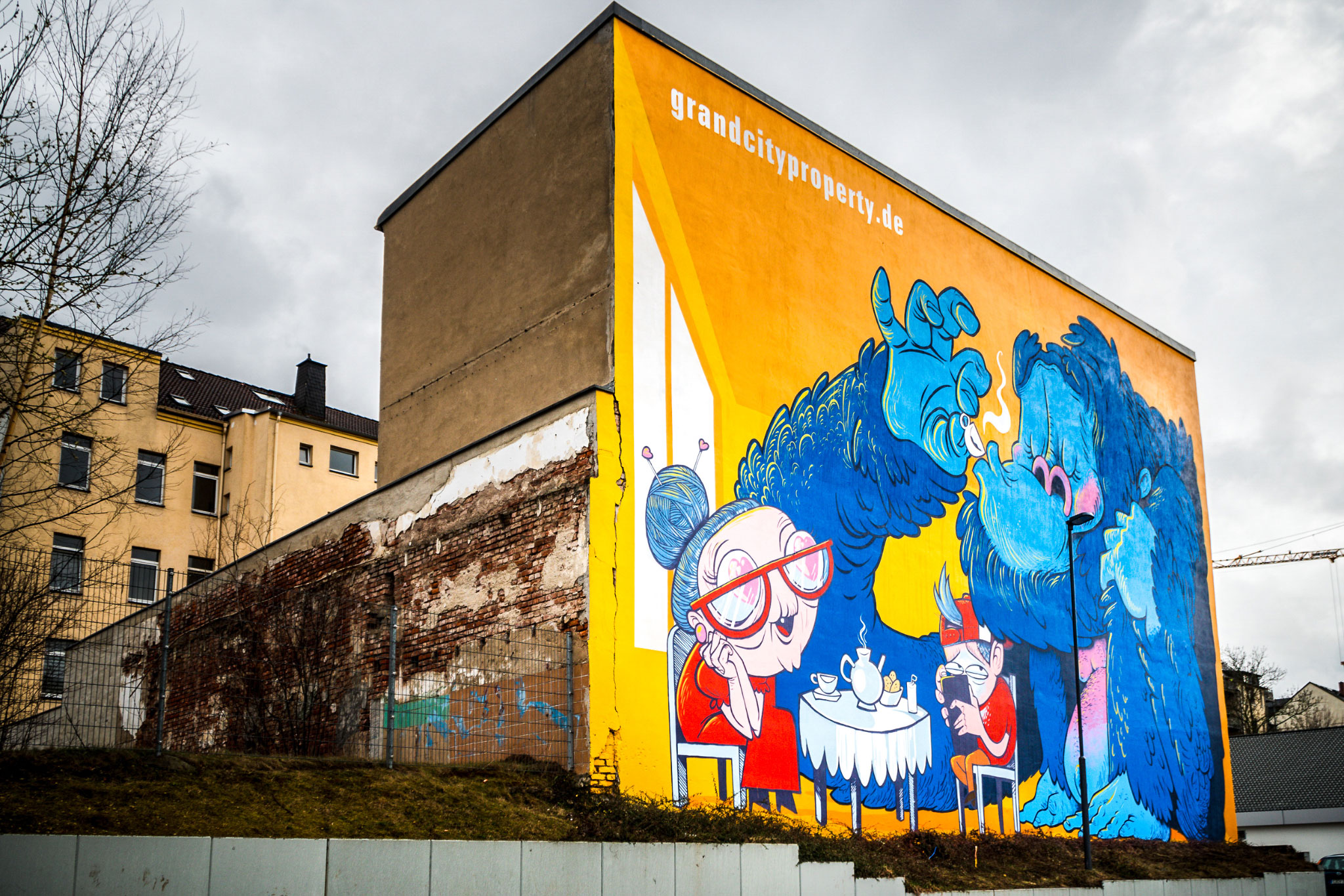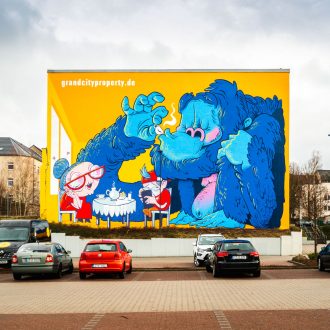 Die hier zu sehende Fassadengestaltung ist eine freie Arbeit des Leipziger Künstlers „MontBlond“. Diese Wand ist Bestandteil des bis 2025 wachsenden Chemnitzer „MuralTrail“ und war Auftakt einer anhaltenden Zusammenarbeit von MontBlond und Rebel-Art. Seither war er an unzähligen Projekten beteiligt und wurde ein unersetzliches Mitglied unseres Teams.
