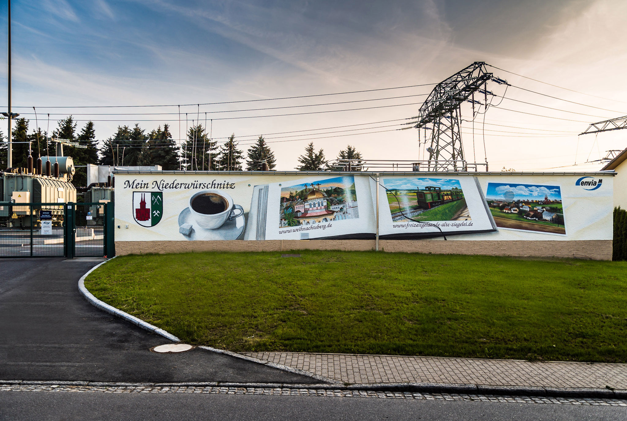 Der Kohlebergbau verwandelte einst Niederwürschnitz von einer Region der Landwirtschaft und kleinen Textilindustrie hin zu einer Industrieregion. Hier spielte im besonderen auch die Ziegelherstellung eine bedeutende Rolle. Die Region um Niederwürschnitz wird dem „Rotliegenden“ zugeordenet, so dass hier vermehrt auch Lehm abgebaut wurde. Nach der Wende wurde das stillgelegte Werk in das Freizeitgelände „Alte Ziegelei“ umgebaut. Da dieses Gelände jedem Bewohner gut bekannt ist, wurde es auf der Trafostation mit verewigt. Eine weitere Besonderheit der Stadt ist der sogenannte Weihnachtsberg. Als weiteres Zeichen der Handwerkskunst zeigt diese Darstellung das Leben und Wirken von Jesus auf ca. 25qm und in 48 Szenen. So beeindruckend dieser ist, hat er sich seinen Platz auf der Trafostation mehr als verdient. Auch diese Arbeit ist Teil der Motivserie