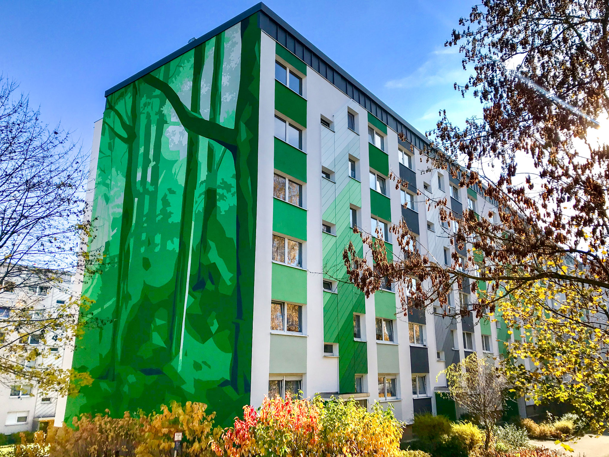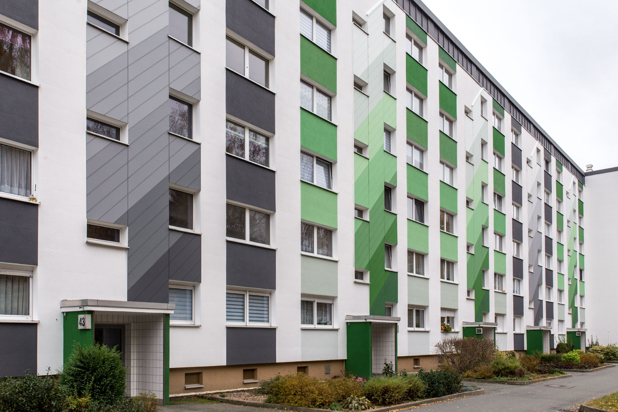 Für dieses Objekt entwickelten wir neben der Gestaltung des Giebels auch das farbige Gesamtkonzept. Wiederholt stand auch bei dieser Gestaltung die Einbindung des Objektes in das von Natur dominierte Umfeld im Vordergrund.