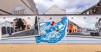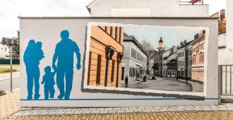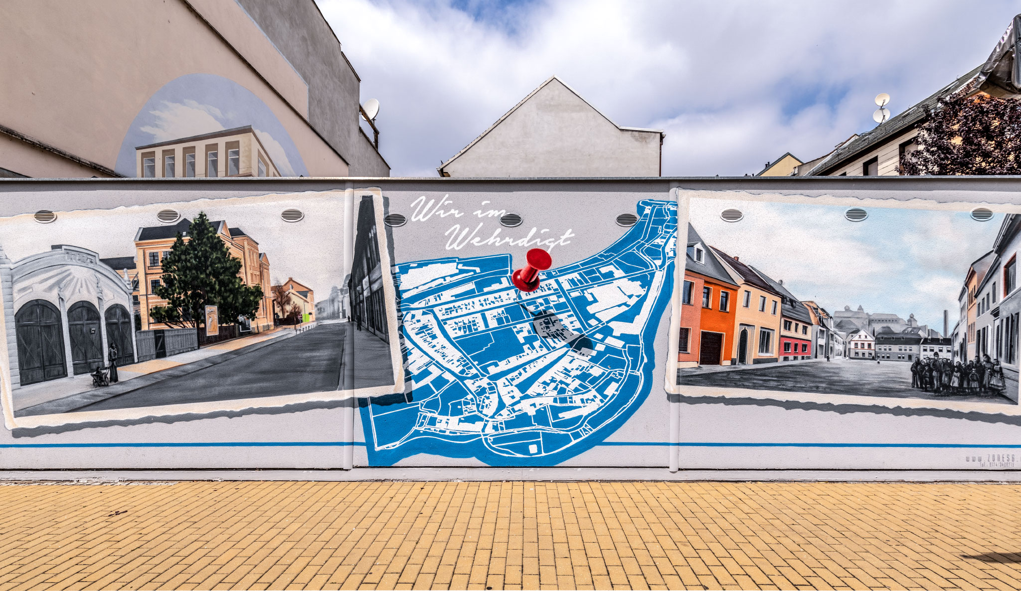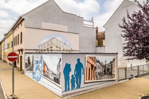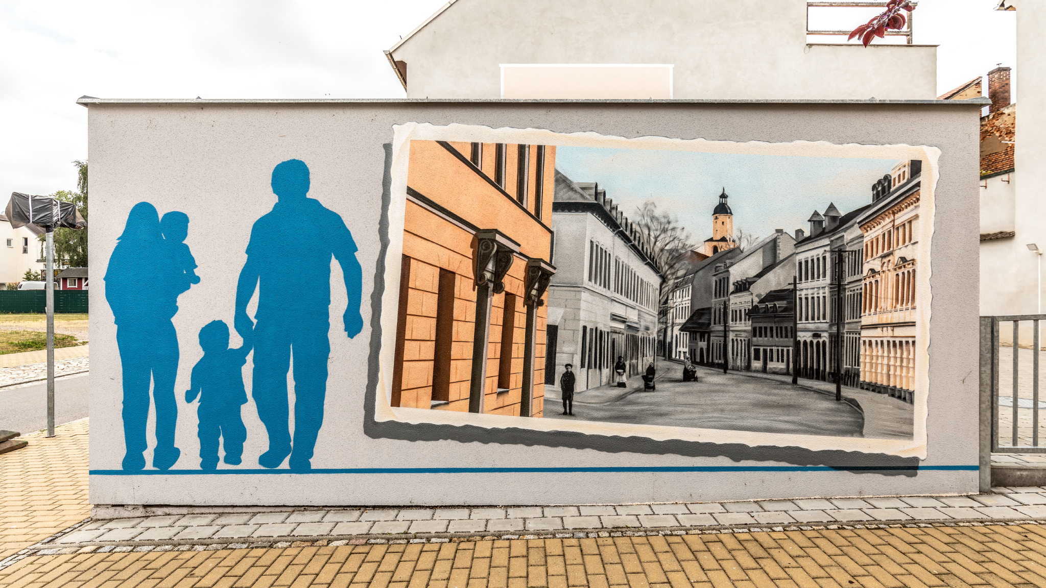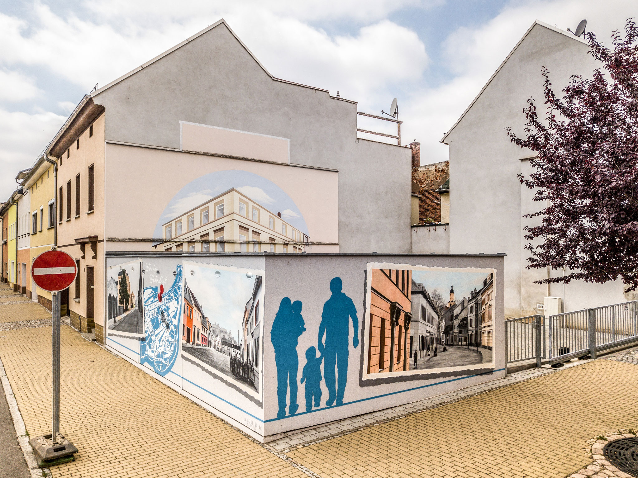 Gestaltung eines Gargenkomplexes nach Entwürfen des Glauchauer Künstlers Markus Esche. Die Malerei bildet das historische Umfeld des Standortes ab. Realisiert wurde die Fassadengestaltung durch Guido Günther und Markus Esche.